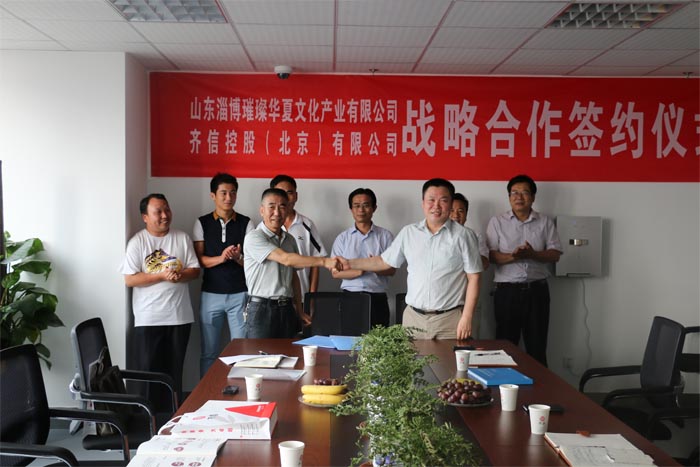 2014年6月27日,山東淄博璀璨華夏文化產(chǎn)業(yè)有限公司控股方代表成晟等一行三人來到我公司參觀交流,之后雙方簽署了《戰(zhàn)略合作協(xié)議》,正式建立全面戰(zhàn)略合作伙伴關系。
