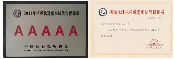 在2011年中國(guó)招標(biāo)投標(biāo)協(xié)會(huì)開(kāi)展的第二屆誠(chéng)信創(chuàng)優(yōu)活動(dòng)中,我公司喜獲“誠(chéng)信創(chuàng)優(yōu)5A等級(jí)”最高榮譽(yù)。 為加強(qiáng)行業(yè)自律,推進(jìn)誠(chéng)信建設(shè),中國(guó)招投標(biāo)協(xié)會(huì)自2009年起組織開(kāi)展了首屆誠(chéng)信創(chuàng)優(yōu)活動(dòng)。該活動(dòng)采取企業(yè)自愿申報(bào)的方式,堅(jiān)持政府支持、協(xié)會(huì)組織、公開(kāi)透明的原則,經(jīng)全國(guó)16個(gè)省級(jí)招標(biāo)投標(biāo)協(xié)會(huì)初審、中國(guó)招標(biāo)投標(biāo)協(xié)會(huì)誠(chéng)信創(chuàng)優(yōu)工作小組復(fù)審、網(wǎng)上公示社會(huì)監(jiān)督等程序產(chǎn)生。本屆全國(guó)共有268家誠(chéng)實(shí)守信、職業(yè)道德良好、業(yè)績(jī)突出的招標(biāo)單位進(jìn)入先進(jìn)行列,其中5A級(jí)機(jī)構(gòu)92家, 4A級(jí)機(jī)構(gòu)82家, 3A級(jí)機(jī)構(gòu)94家。