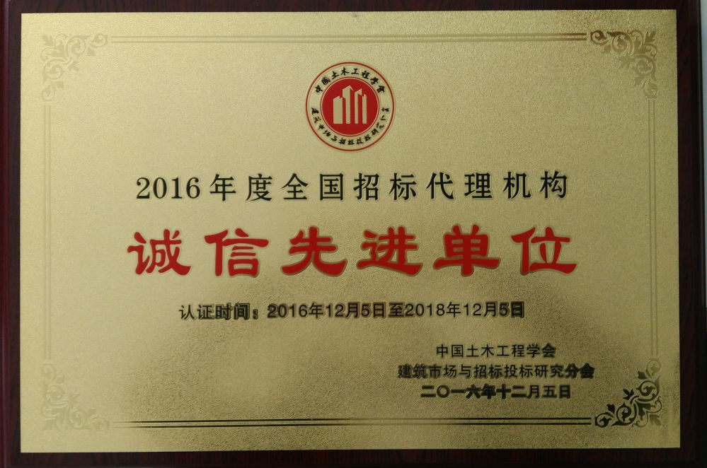中國(guó)土木工程學(xué)會(huì)建筑市場(chǎng)與招投標(biāo)研究分會(huì)在全國(guó)行業(yè)范圍內(nèi)開展了“2015-2016年度全國(guó)建設(shè)工程招標(biāo)代理機(jī)構(gòu)誠(chéng)信先進(jìn)單位”評(píng)選表彰活動(dòng)。經(jīng)各省、自治區(qū)、直轄市相關(guān)部門組織初審,嚴(yán)格把關(guān),評(píng)選推薦并報(bào)中國(guó)土木工程學(xué)會(huì)建筑市場(chǎng)與招標(biāo)投標(biāo)研究分會(huì)全國(guó)建設(shè)工程招標(biāo)代理機(jī)構(gòu)專家咨詢委員會(huì)評(píng)審,最終評(píng)選出全國(guó)“誠(chéng)信先進(jìn)單位”,山東齊信招標(biāo)有限公司獲得了本次“誠(chéng)信先進(jìn)單位”的榮譽(yù)稱號(hào)。
