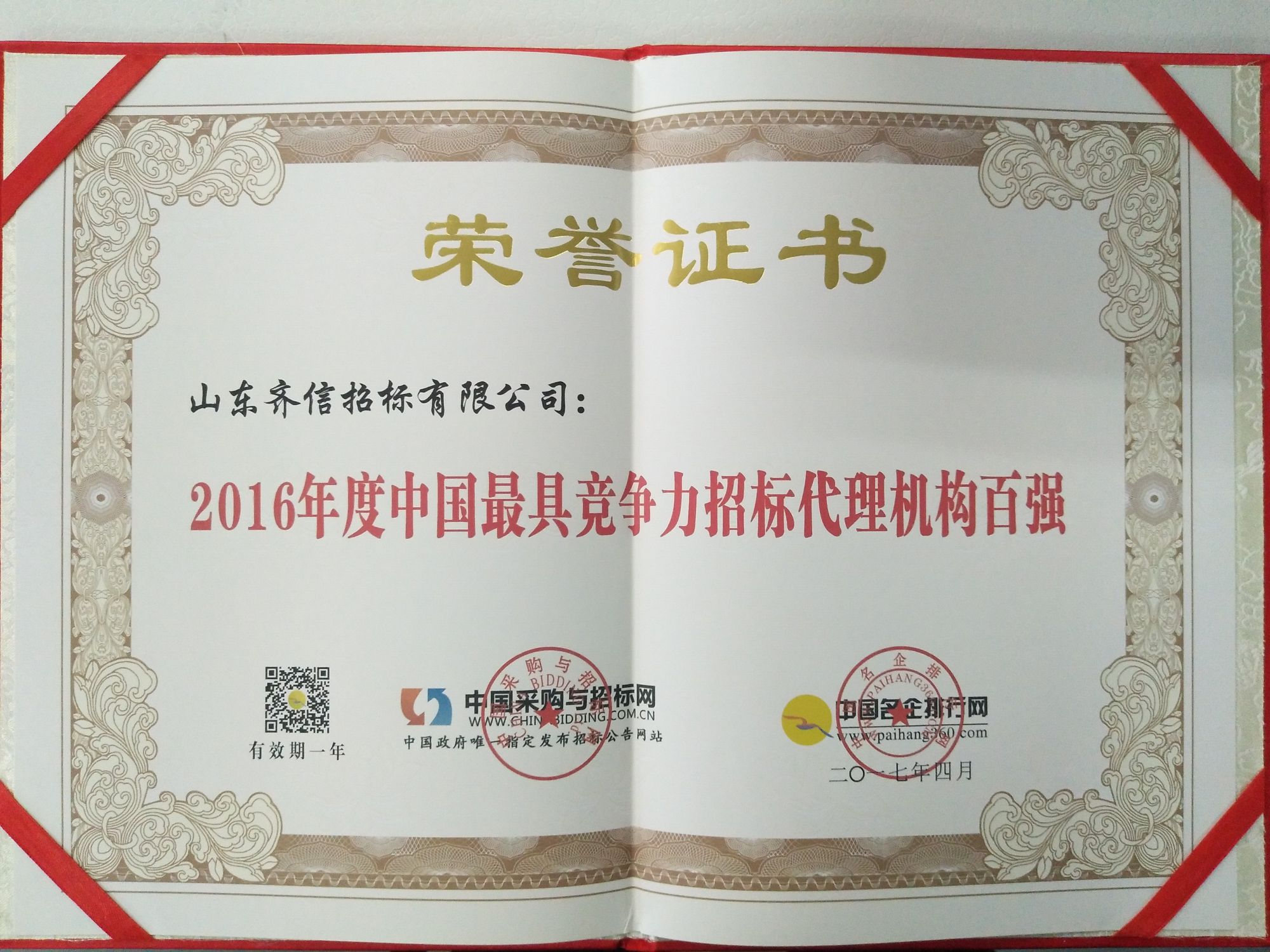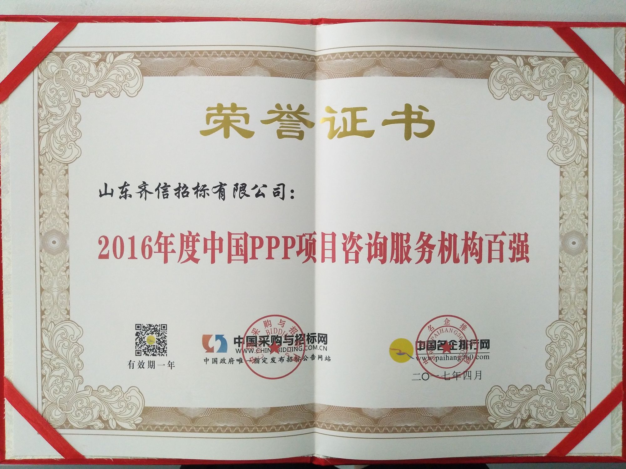 日前, 2016年度中國最具競爭力招標機構(gòu)百強及2016年度中國PPP項目咨詢服務(wù)機構(gòu)百強在京正式揭曉,山東齊信招標有限公司分別位列第29名和第30名。